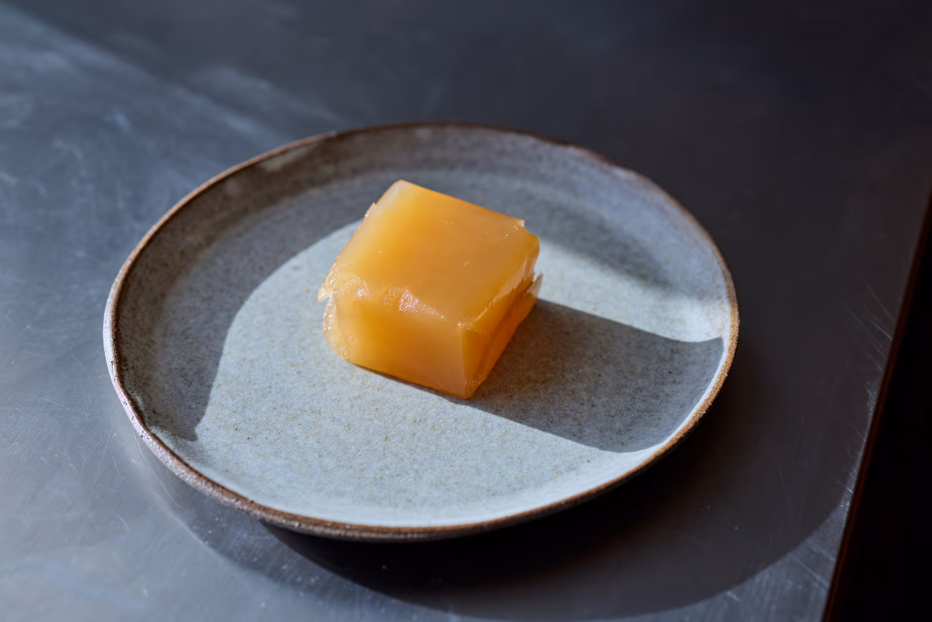 We've paired this coffee with “yokan” (羊羹, yōkan), a Japanese confection made from azuki bean paste and sugar. Yokan is a traditional Japanese sweet originating from China over 1,000 years ago. Over the centuries the yokan was refined into its contemporary form and became associated with the Japanese tea ceremony thanks to its elegant shape and sweetness.